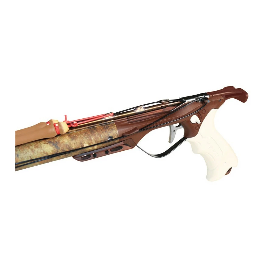 Trigocamo Wide : Tube avec le Trigocamo Wide exclusif Beuchat, crosse Hero marron et beige pour compléter le camouflage du fusil.