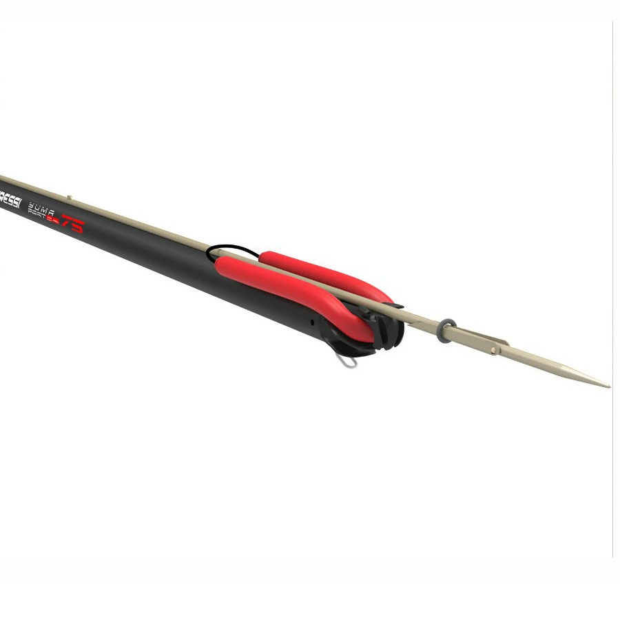 L’arbalète est livrée avec un sandow en latex naturel de 14 mm, avec un obu wishbone en Dyneema.