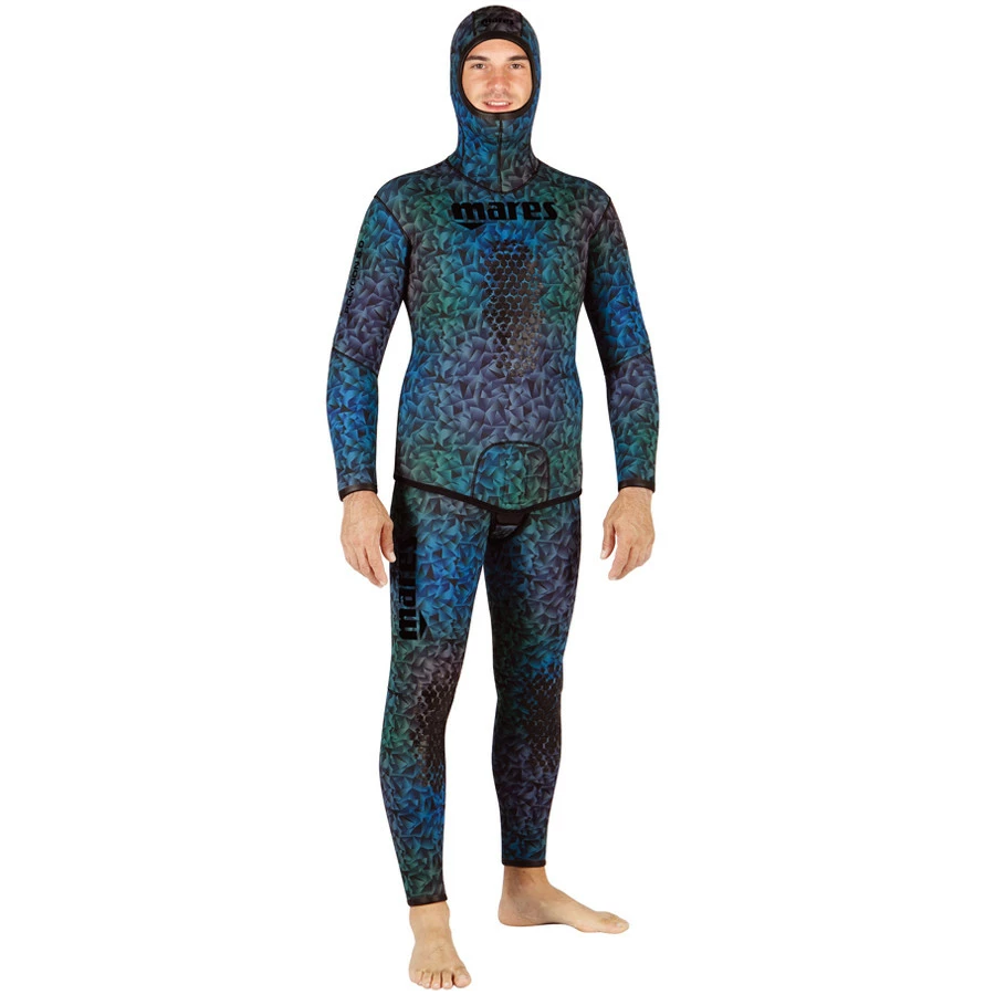 – Bordure en neoprene lisse replie au niveau du visage, de la taille, aux chevilles et aux poignets