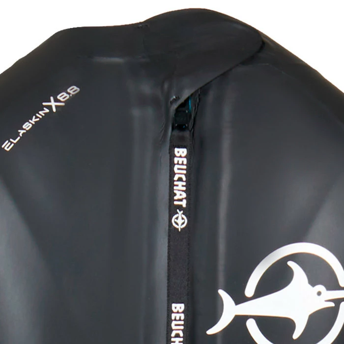 Coupe anatomique proche du corps pour une grande aisance de mouvement. Zone spécifique ultra strech Elaskin X8.8 sur le buste afin de dégager la poitrine pour une inspiration forcée lors d’un départ en apnée.