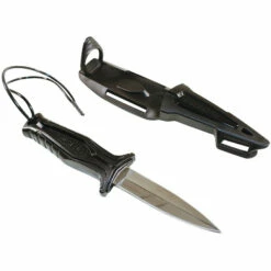 Système ingénieux 2 en 1 de dragonne qui assure à la fois la fonction de sangle de poignet et de maintien du couteau dans son fourreau