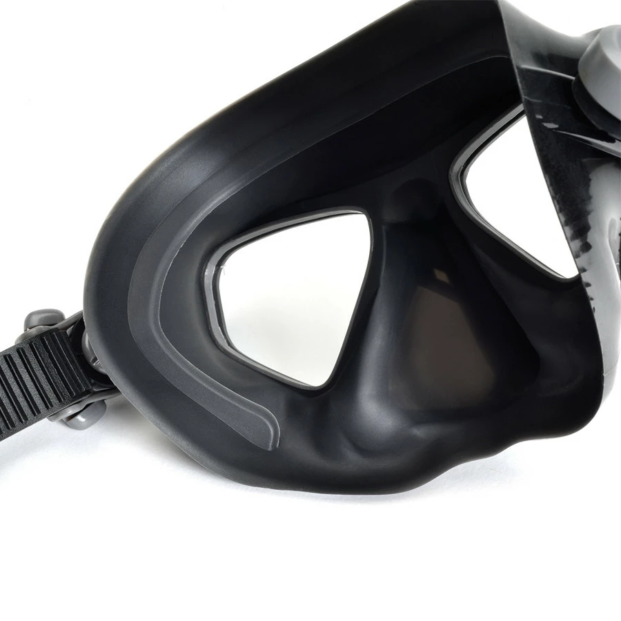 Les géométries sont hautement hydrodynamiques et le masque se comporte dans l’eau sans aucune tension typique des plongées profondes et des remontées rapides.