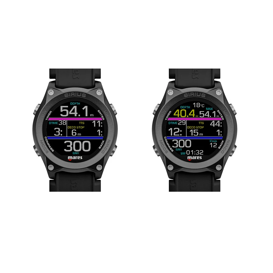 Le Sirius est un ordinateur de plongée au format montre qui allie parfaitement technologie et élégance. Les caractéristiques de cet ordinateur de plongée présentent une technologie haut de gamme à la fois pour le plongeur loisir que pour le plongeur technique. Le plongeur loisir peut voir les données de plongée de manière simple et intuitive, avec la possibilité d’intégrer les données de la bouteille grace à un émetteur en option. Le plongeur technique peut insérer jusqu’à cinq mélanges nitrox et trimix. Grâce au bracelet interchangeable, il peut être utilisé avec n’importe quelle épaisseur de combinaison.