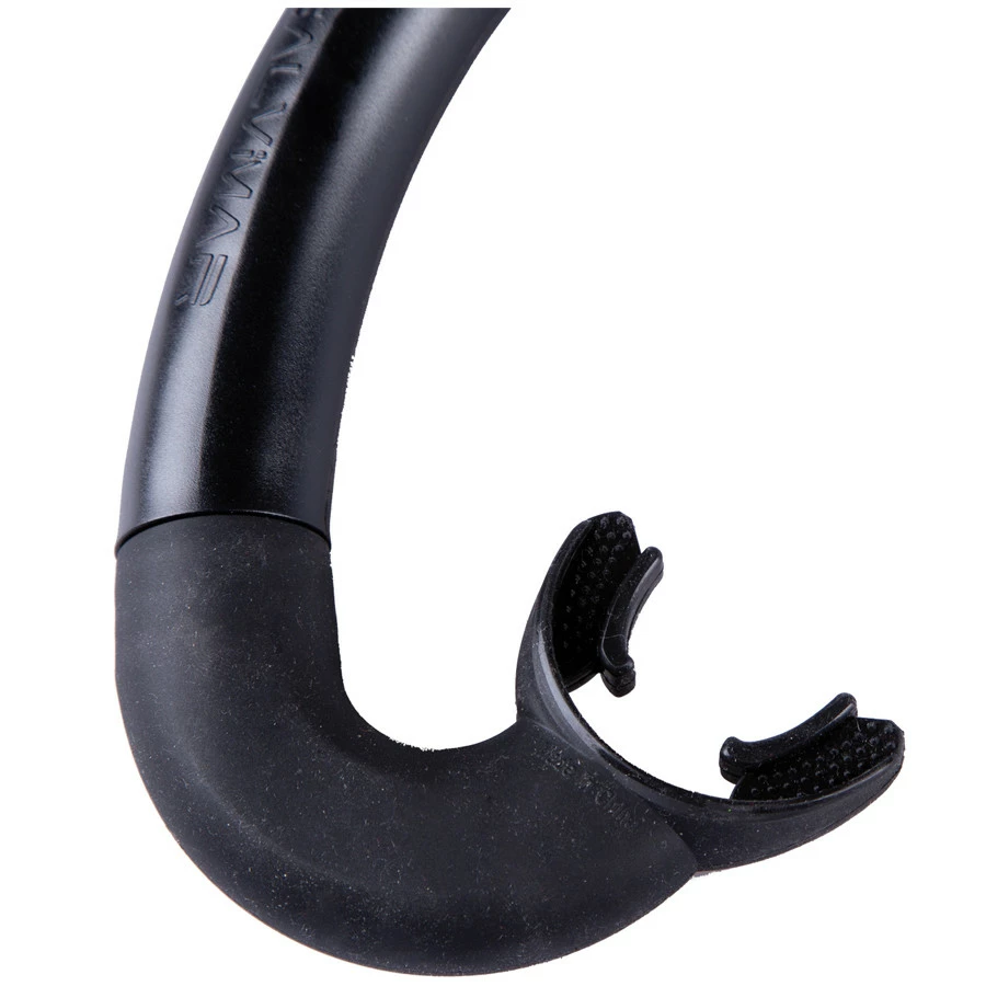 – Tuba composé d’un embout en silicone anti allergique étudie pour s’appuyer parfaitement sur la courbure parabolique de la mâchoire. L’embout est caractérisé par une lamelle interne verticale, qui empêche l’écrasement du conduit de respiration et réduit le bruit de la respiration.